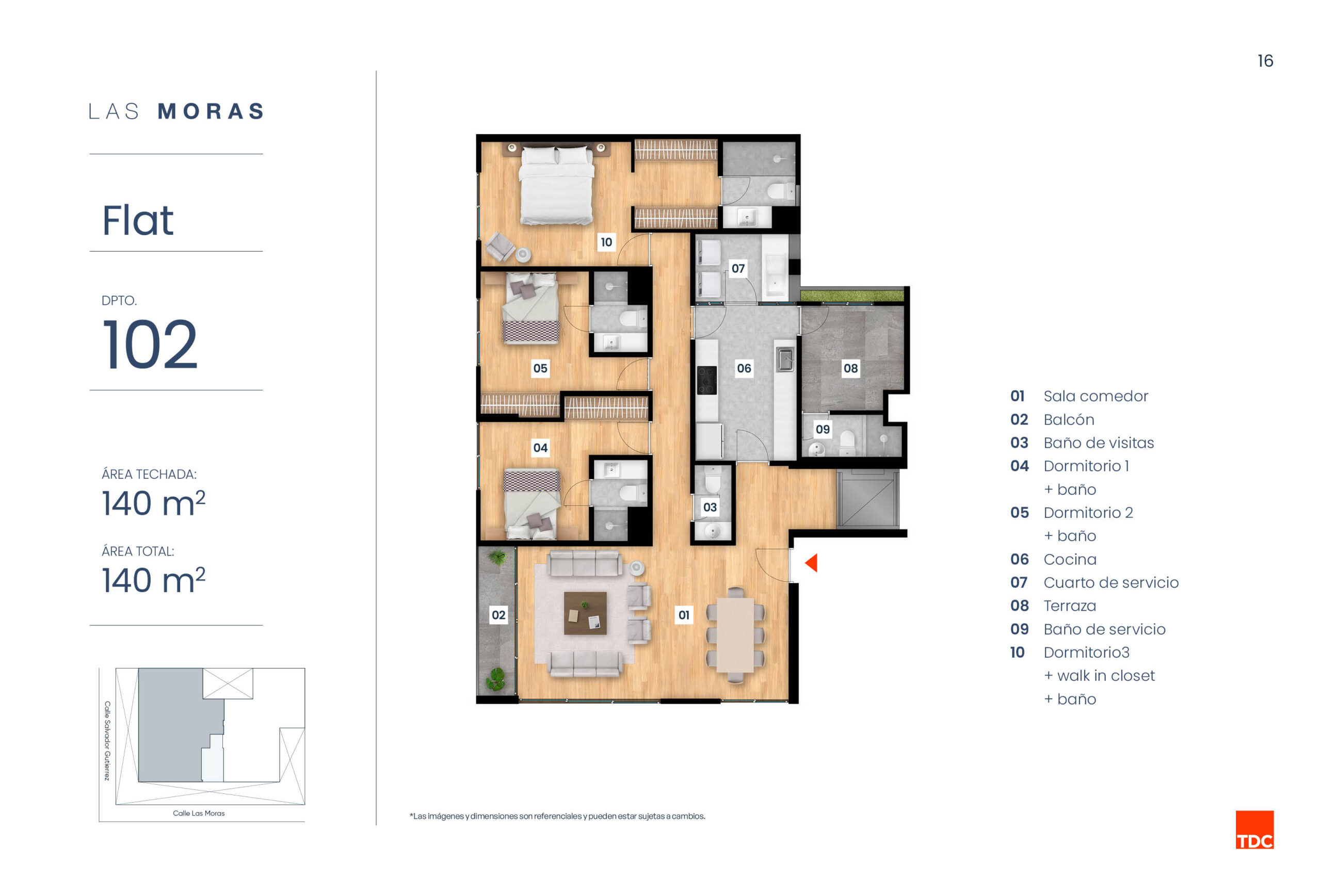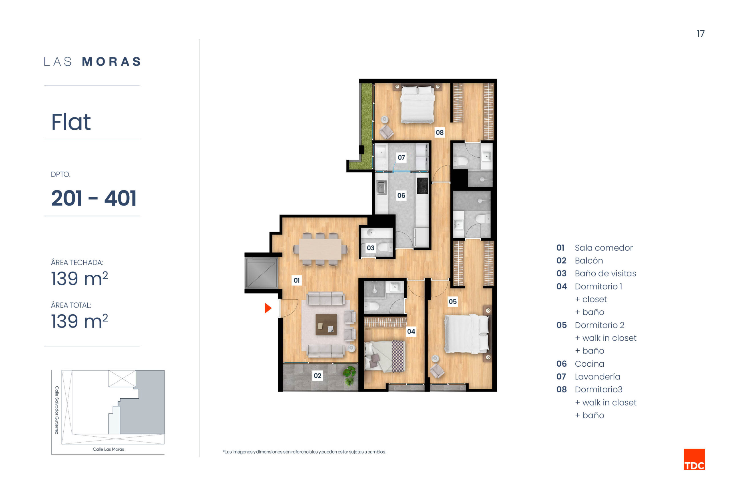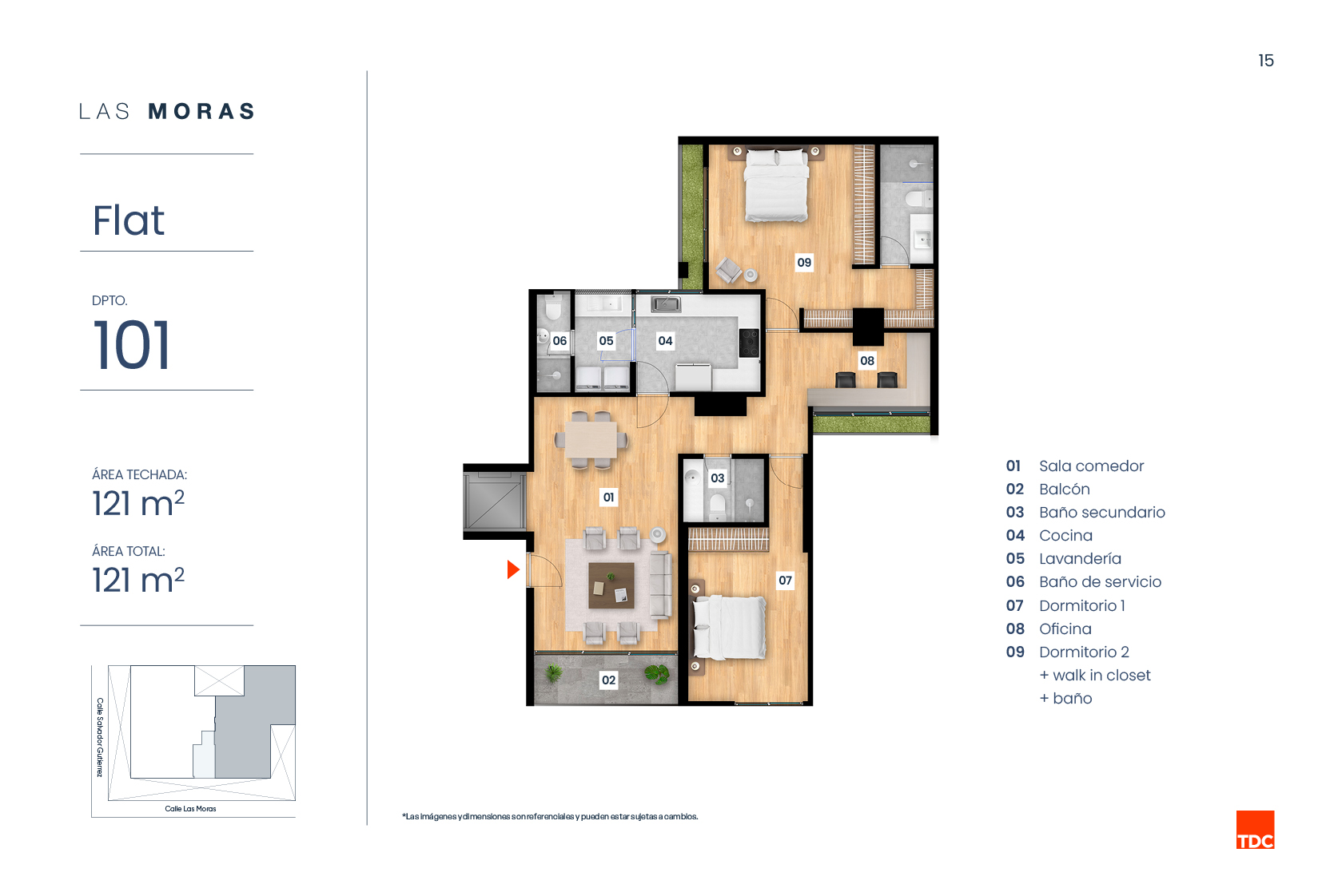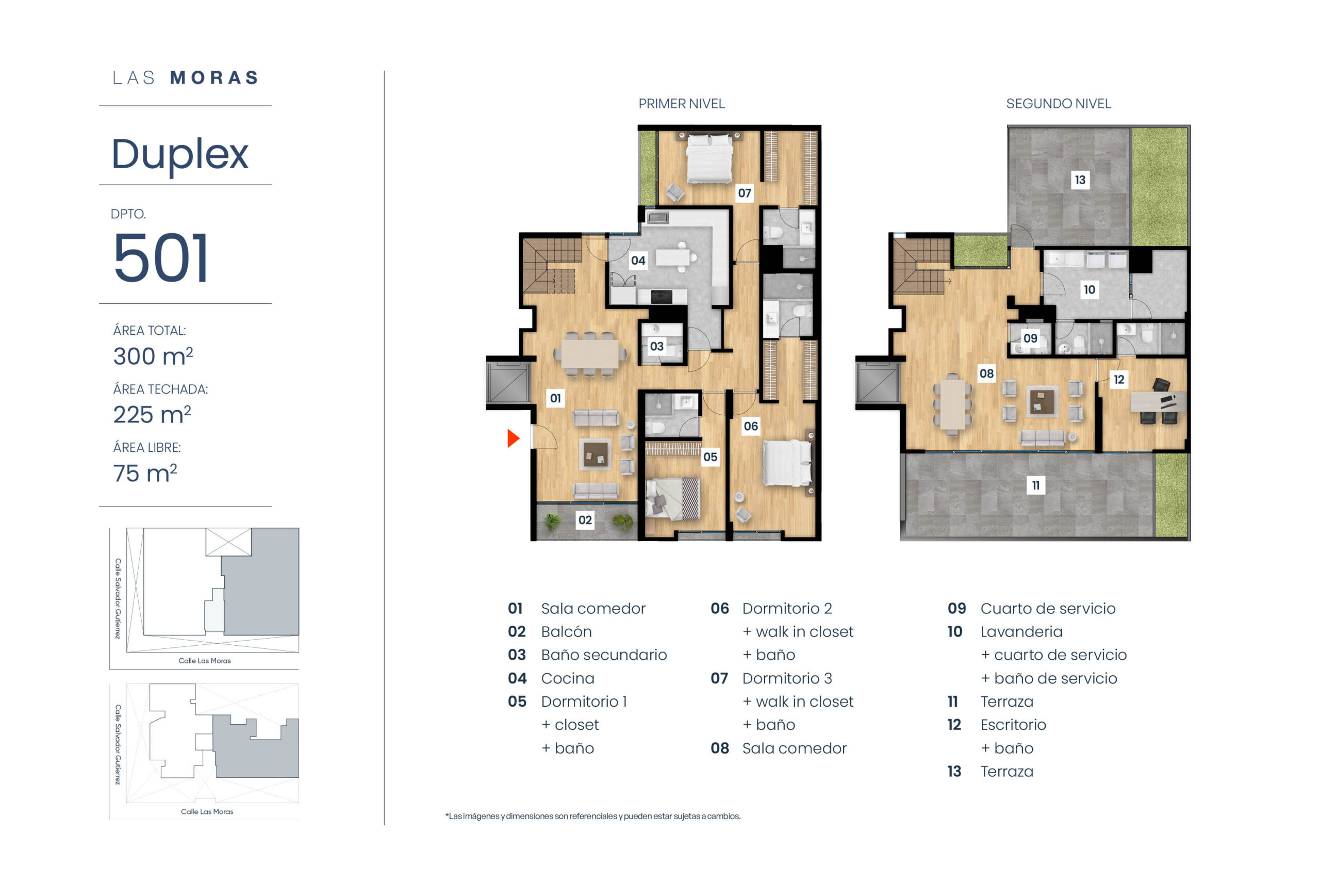 LAS MORAS UN LUGAR PENSADO PARA VIVIR MEJOR: JUNTO A UN PARQUE Y RODEADO DE TRANQUILIDAD, ESTE EDIFICIO EN MIRAFLORES TE ACERCA A UNA VIDA MÁS EQUILIBRADA Y NATURAL Descarga Brochure UbicaciónCalle Las Moras 315 - Miraflores Metrajede 121m2 hasta 300m2 Dormitorios2 y 3 Pisos5 Ver ubicación DPTO. S01 Disponible ÁREA TECHADA: 100 m²ÁREA TOTAL: 125 m² DPTO. S02 Vendido ÁREA TECHADA: 103 m²ÁREA TOTAL: 169 m² DPTO. 101 Disponible ÁREA TECHADA: 121 m²ÁREA TOTAL: 121 m² DPTO. 102 Vendido ÁREA TECHADA: 140 m²ÁREA TOTAL: 140 m² DPTO. 201 Disponible ÁREA TECHADA: 139 m²ÁREA TOTAL: 139 m² DPTO. 202 Separado ÁREA TECHADA: 164 m²ÁREA TOTAL: 164 m² DPTO. 301 Separado ÁREA TECHADA: 150 m²ÁREA TOTAL: 150 m² DPTO. 302 Vendido ÁREA TECHADA: 150 m²ÁREA TOTAL: 150 m² DPTO. 401 Disponible ÁREA TECHADA: 139 m²ÁREA TOTAL: 139 m² DPTO. 402 Separado ÁREA TECHADA: 164 m²ÁREA TOTAL: 164 m² DPTO. 501 Disponible ÁREA TECHADA: 225 m²ÁREA TOTAL: 300 m² DPTO. 502 Vendido ÁREA TECHADA: 223 m²ÁREA TOTAL: 300 m²